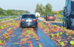Снимката е на Васко Василев от ФБ групата „Виждам те КАТ-Варна“. Камион, който превозва дини, е разсипал товара си на АМ „Хемус“ в посока Шумен, съобщиха за Радио Варна от КАТ-Варна. Инцидентът е станал около 7.30 часа тази сутрин в участъка между Провадия и Неофит Рилски, до пътен възел Ветрино, …